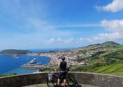 Zapraszamy na niezwykłą rowerową wyprawę po São Miguel, największej wyspie Azorów, gdzie malownicze krajobrazy i wulkaniczne cuda natury czekają na odkrycie. Podczas tej wycieczki przejedziesz przez najbardziej spektakularne i ikoniczne miejsca wyspy, takie jak kraterowe jeziora Sete Cidades, które zachwycają kontrastującymi odcieniami zieleni i błękitu, oraz Lagoa do Fogo – dziewicze jezioro położone wśród gór.