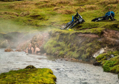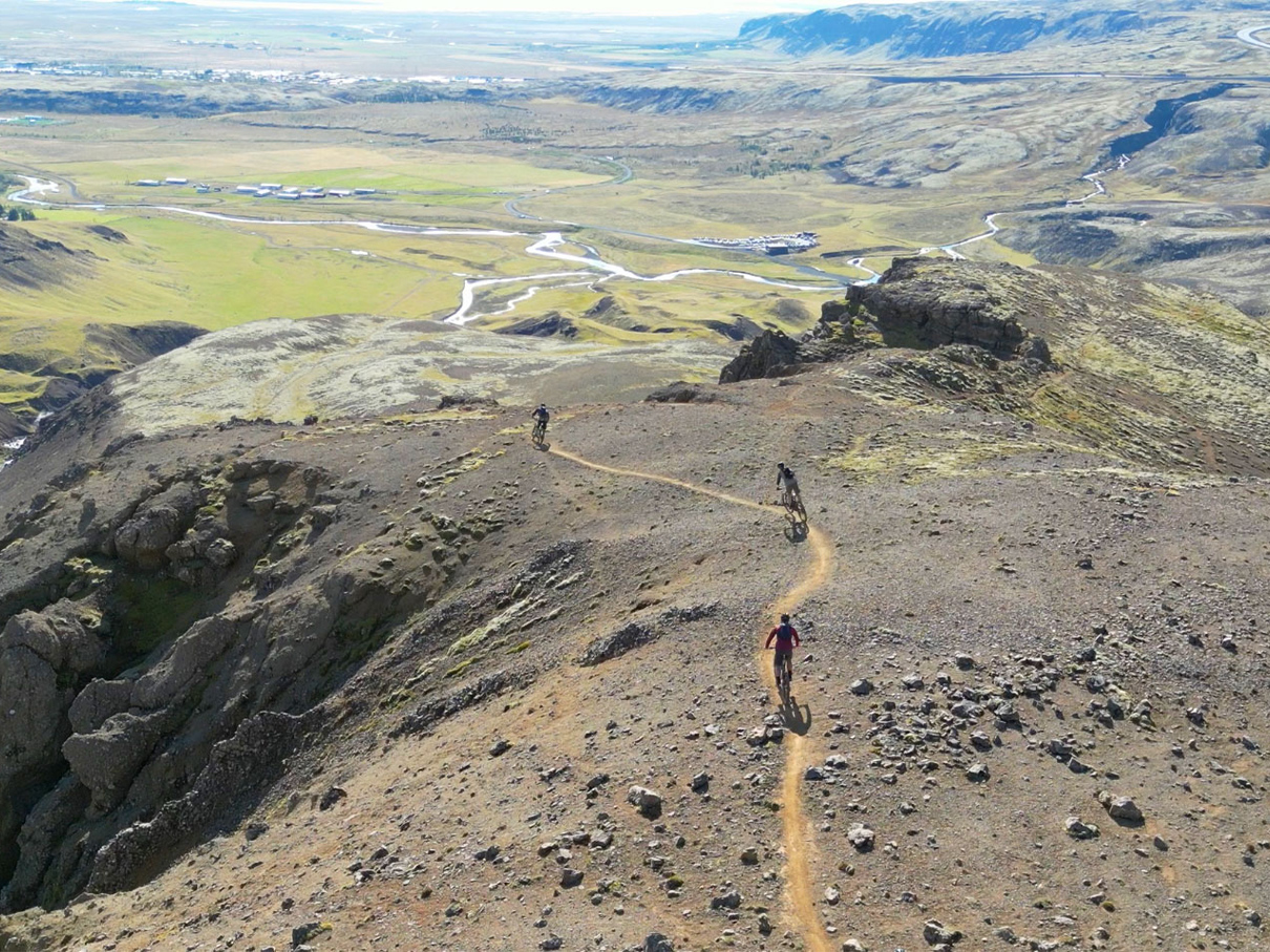 Hengill to obszar górsko-geotermalny, gdzie teren faluje i stale się zmienia. Trasy prowadzą przez doliny z gorącymi źródłami, zbocza o luźnym, wulkanicznym podłożu oraz szerokie przełęcze. Para unosząca się z ziemi, zapach siarki i kontrast kolorów sprawiają, że jazda ma niemal surrealistyczny charakter.