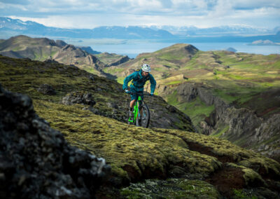 Rejon Mosfellsbær łączy zielone doliny rzeczne z czarnymi polami lawy. Trasy prowadzą szerokimi szutrami, starymi drogami technicznymi oraz łagodnymi singletrackami. Widoki często się otwierają – widać ocean, góry w oddali i niską zabudowę Reykjaviku z daleka.