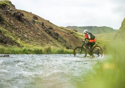 Środek tygodnia zdominowany jest przez dwa następujące po sobie dni eMTB. Trasy w rejonie Mosfellsbær, Reykjanes i Hengill prowadzą przez bardzo zróżnicowany teren: od zielonych dolin rzecznych, przez czarne pola lawy, po surowy interior geotermalny. Jazda na rowerze pozwala doświadczyć Islandii w sposób bezpośredni – w ciszy, wśród wiatru, zapachu siarki i zmieniającego się światła. To najbardziej „dziki” i intensywny fragment wyjazdu.