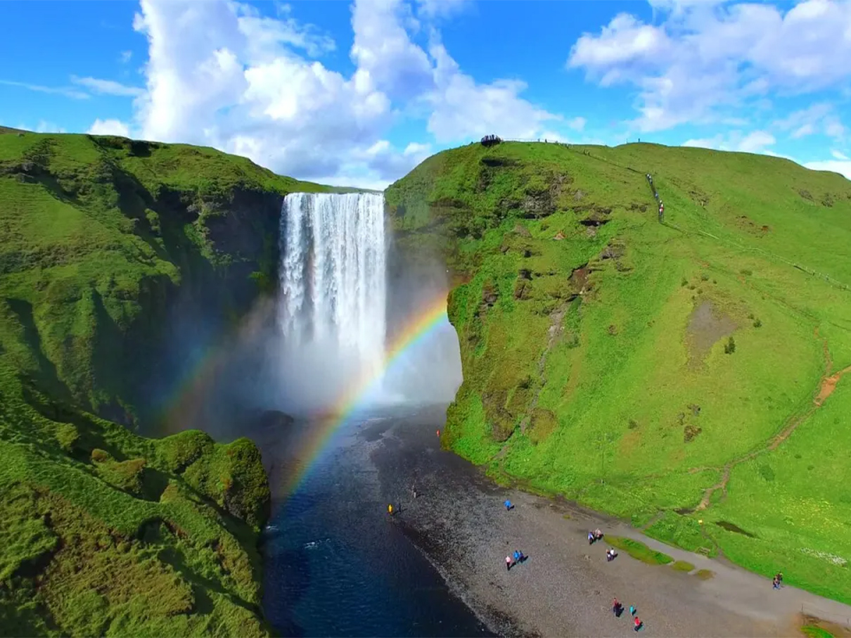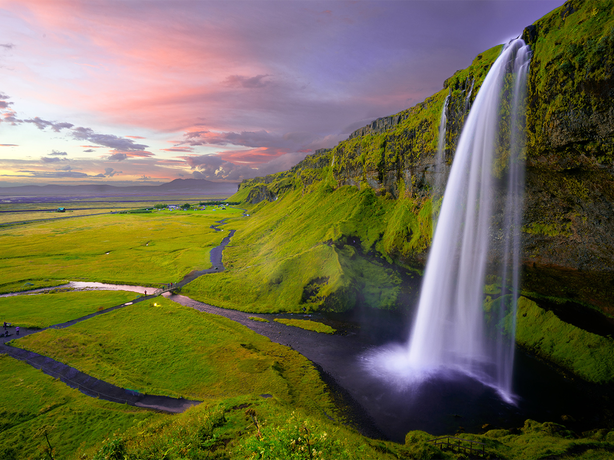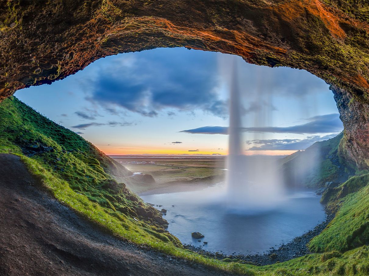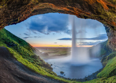 Seljalandsfoss spada z wysokiego klifu, a ścieżka prowadzi za ścianą wody. Kilkaset metrów dalej Gljufrabui ukrywa się w wąskiej szczelinie skalnej, co daje bardzo intymne doświadczenie.
