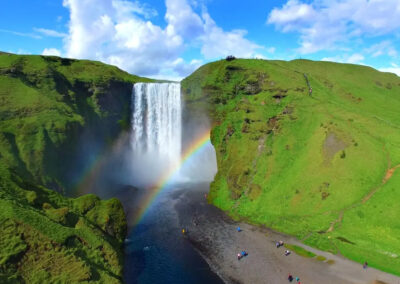 Druga część tygodnia to eksploracja południowego wybrzeża oraz zachodniej Islandii. Wodospady spadające z wysokich klifów, czarne plaże obmywane przez Atlantyk, lodowce schodzące nisko w doliny oraz laguny wypełnione górami lodowymi pokazują ogromną skalę i różnorodność krajobrazu. Wycieczka na zachód wyspy – do Glymur, Kirkjufell i Arnarstapi – wprowadza bardziej surowe, skaliste pejzaże i spokojniejsze tempo zwiedzania.