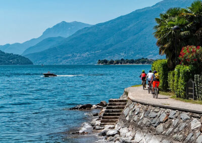 Rozpoczynamy jazdę wzdłuż zachodniego wybrzeża jeziora, gdzie już od pierwszych kilometrów towarzyszą nam widoki na wodę i górskie zbocza. Następnie trasa skręca w głąb pasma górskiego, prowadząc przez wymagające, ale niezwykle widokowe podjazdy na Monte San Bernardo oraz Monte Bisbino.