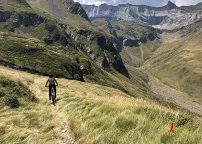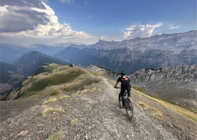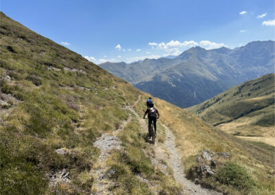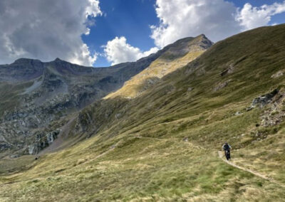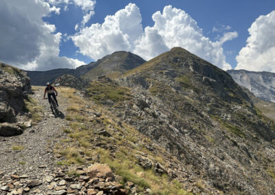 Trasa Transpyr to klasyczny odcinek przeprawy przez Pireneje, dostosowany do e-MTB. Prowadzi przez doliny po obu stronach pasma, wysokogórskie przełęcze, grzbiety i malownicze lasy. Charakter: długi, panoramiczny, wymagający kondycyjnie, ale technicznie łatwy. Trasa daje poczucie prawdziwej przeprawy górskiej. Po zakończeniu możliwy transfer w kierunku Barcelony lub nocleg po drodze.