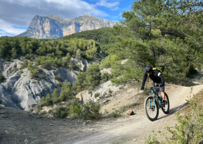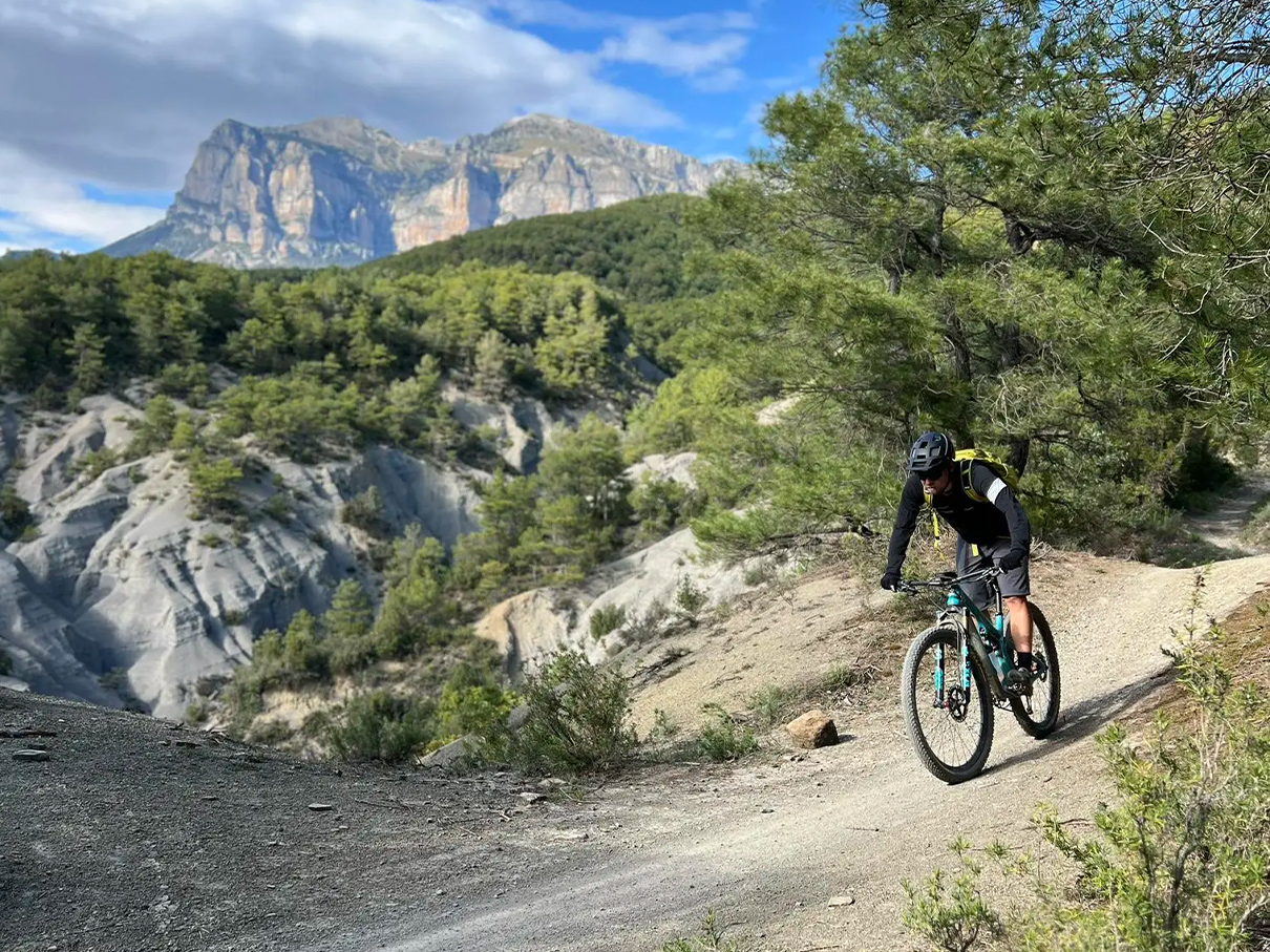 Drugi dzień w Aínsie. Trasa prowadzi w kierunku klasztoru San Victorián i masywu Peña Montañesa. Długie podjazdy szutrowe nagradzane są spektakularnymi widokami na główne pasma Pirenejów. Charakter: górski, panoramiczny, łatwy technicznie.