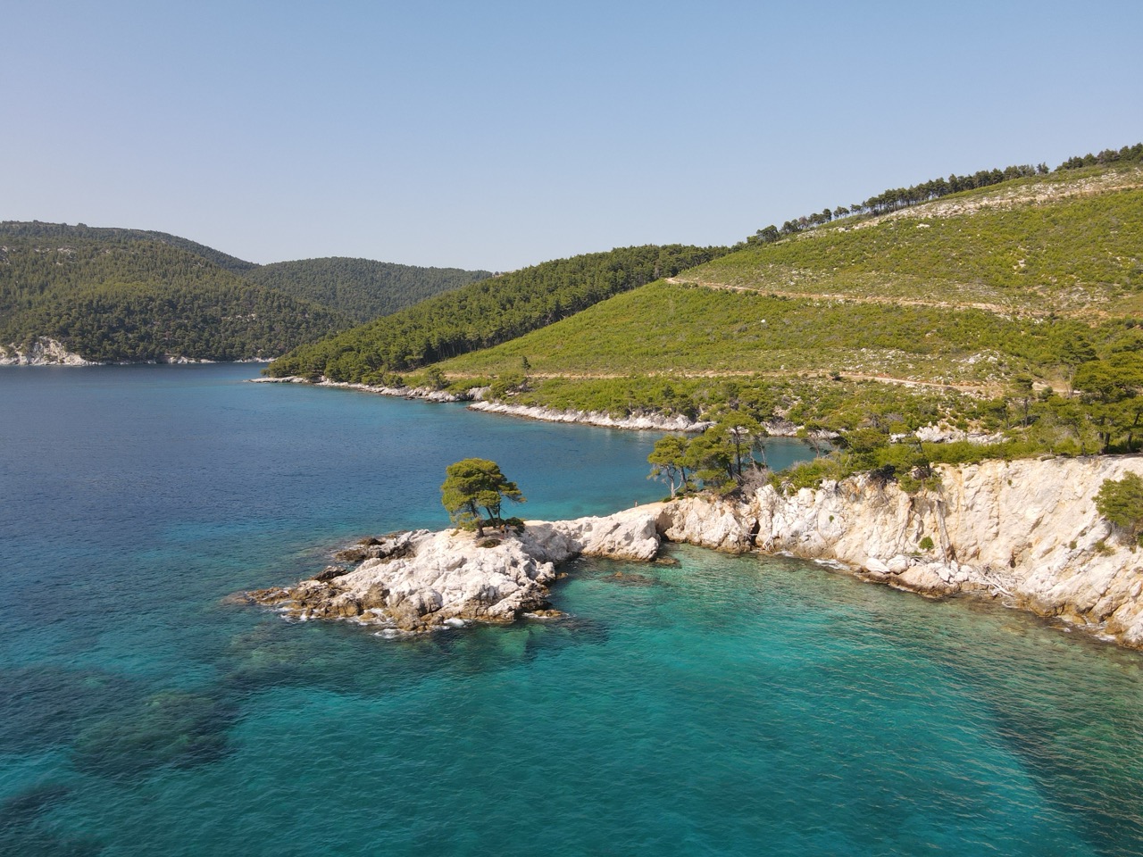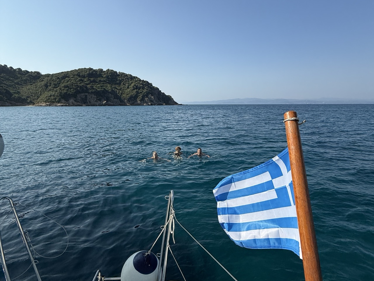 Przed północą docieramy w okolice Skiathos i kotwiczymy w spokojnej, bezludnej zatoce tuż przy brzegu.