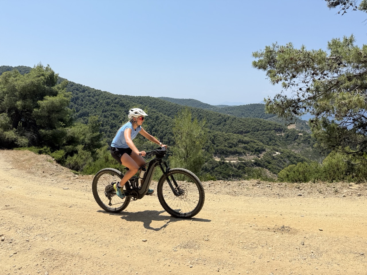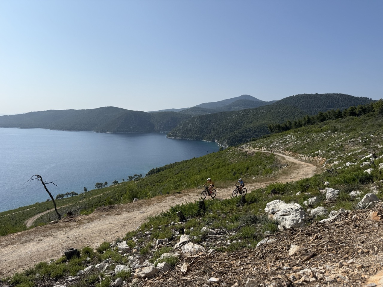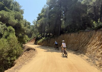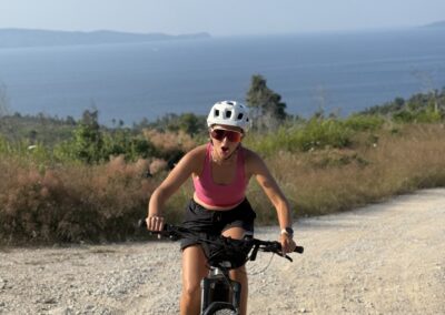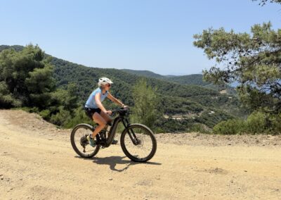 Ruszamy na pierwszą rowerową wyprawę! Odkrywamy górzyste ścieżki Skiathos, białe wioski i punkty widokowe z panoramą słynnych plaż.