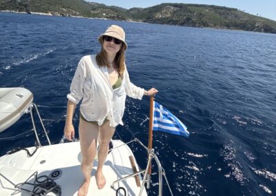 Po krótkim odpoczynku i zaokrętowaniu, nasz jacht kieruje się ku wyspie Skiathos.