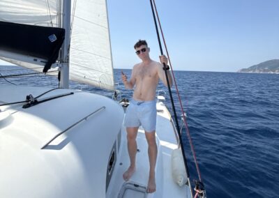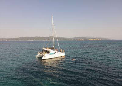 Do naszej dyspozycji dwa katamarany Lagoon400, bardzo duży pokład, 6 kajut (4 dwuosobowe oraz dwie jedynki skipperowe na dziobach). W każdej z kajut jest łazienka.