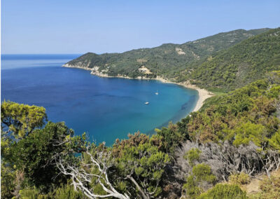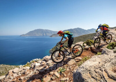 Dzień zaczynamy od rowerowej wyprawy przez Alonissos – trasa prowadzi z Patitiri do portu Geralas, przez lasy piniowe i dzikie zatoki.