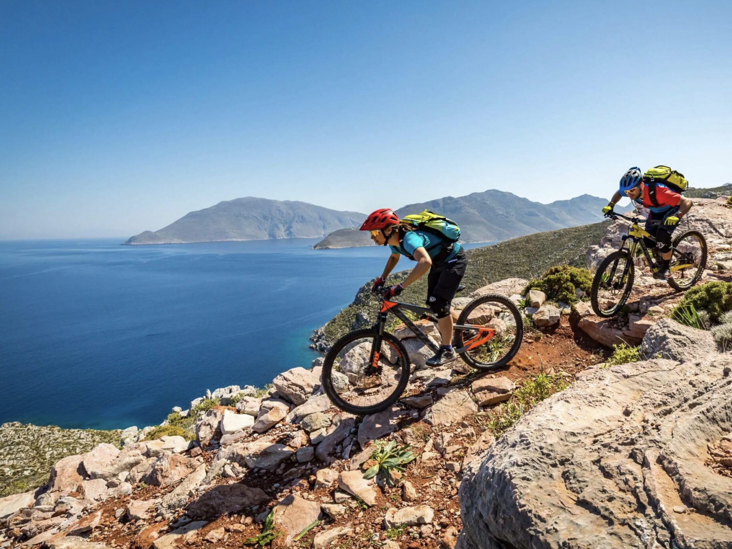 Ruszamy na pierwszą wycieczkę rowerową – odkrywamy górzyste ścieżki Skiathos, wioski z białymi domkami i punkt widokowy na słynne plaże wyspy.