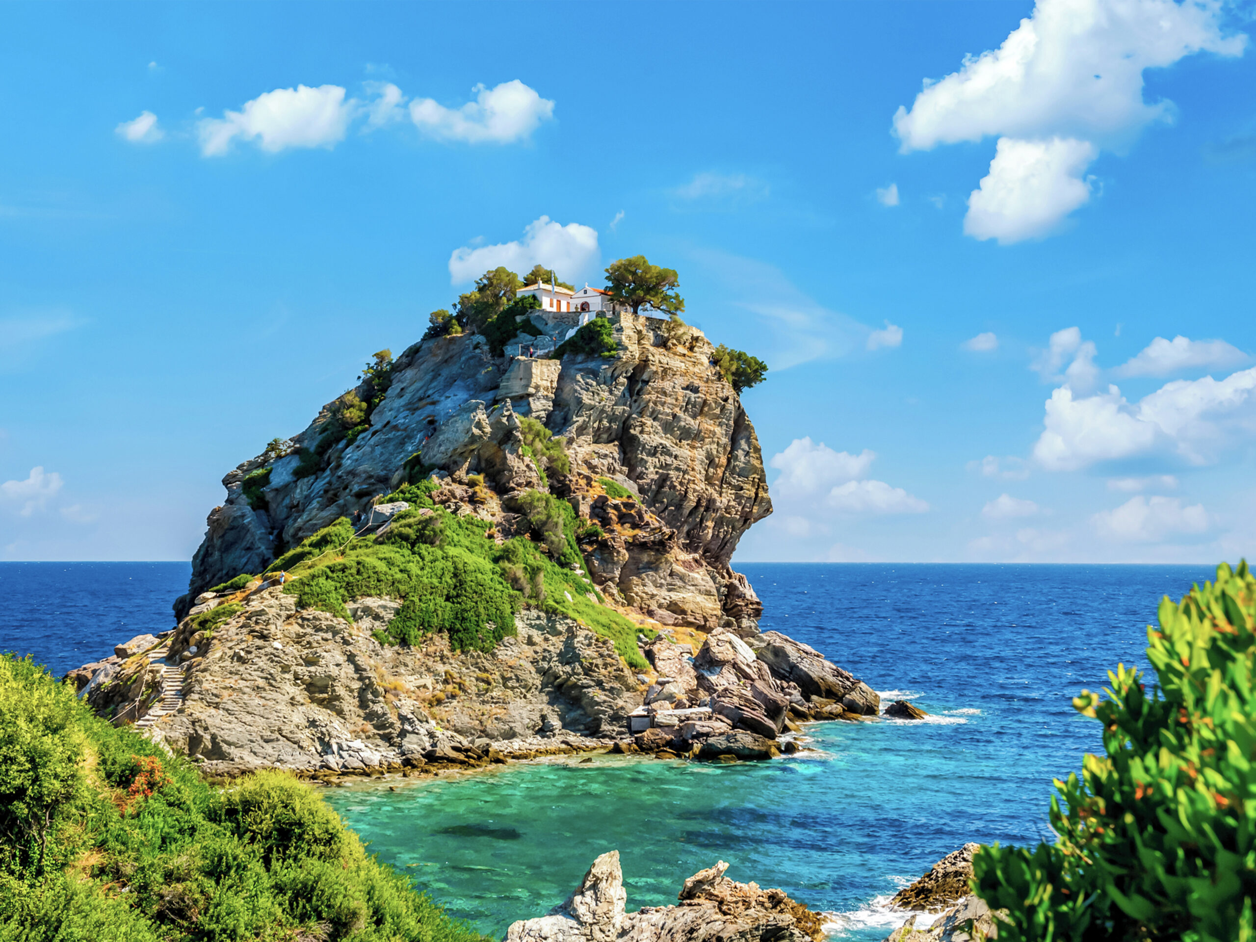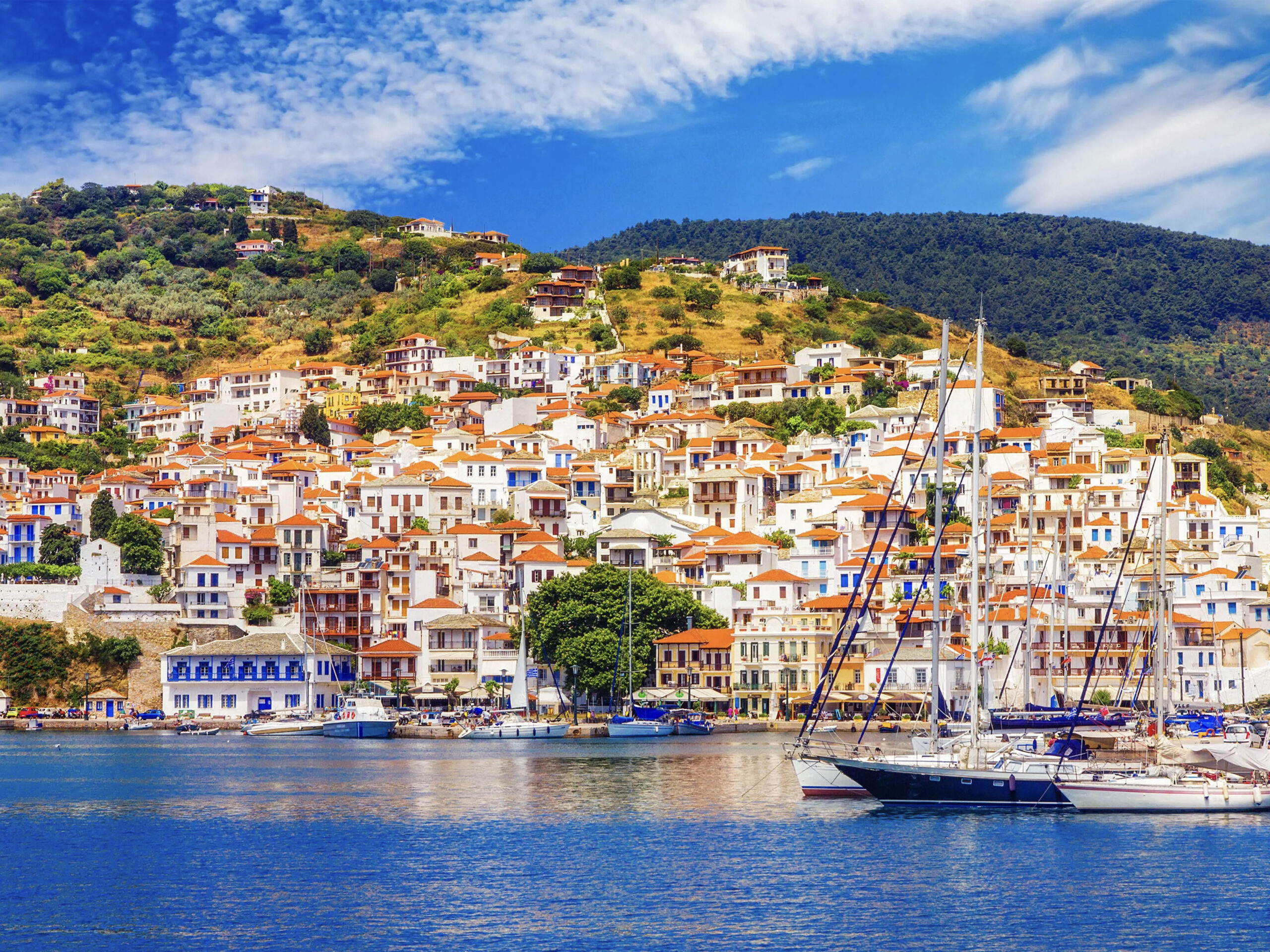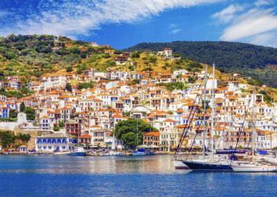 Po południu wskakujemy na jacht i płyniemy dalej – tym razem kierunek: Skopelos – wyspa znana z filmowych ujęć Mamma Mia!.