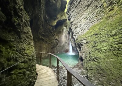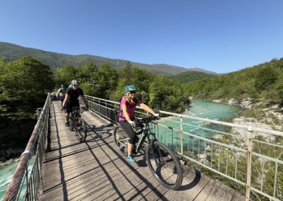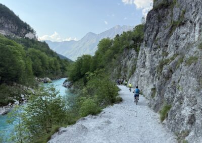 Dziś czeka nas przejazd przez legendarną Przełęcz Vršič (1611 m n.p.m.) – najwyższą asfaltową przełęcz w Słowenii. Droga składa się z ponad 50 serpentyn i oferuje niezapomniane panoramy na Alpy Julijskie. Po krótkim podejściu rozpoczynamy długi zjazd wzdłuż doliny rzeki Soča – jednej z najczystszych i najpiękniejszych rzek Europy, znanej z turkusowej barwy. Zatrzymujemy się w Kobaridzie, historycznym miasteczku z muzeum I wojny światowej.
