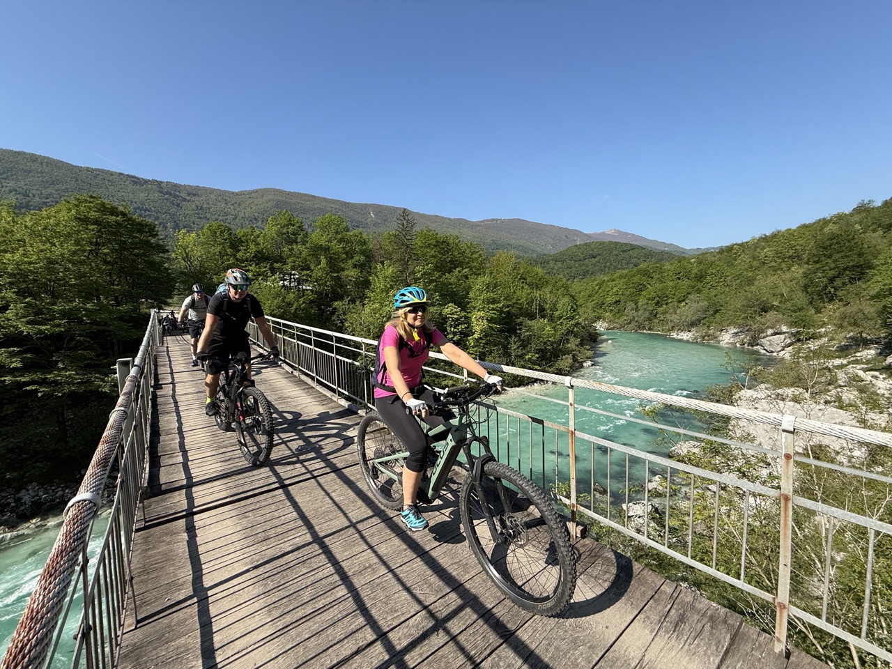 Na zakończenie naszej wyprawy jeszcze raz zanurzamy się w górskim klimacie. Startujemy z wysoko położonych terenów u podnóża Matajur, skąd zjeżdżamy serpentynami z przepięknymi widokami na doliny i szczyty. Mijamy Kobarid, by zakończyć w miejscowości Tolmin, tuż przy ujściu rzeki Tolminki do Sočy. Idealne miejsce na relaks i podsumowanie całej przygody.